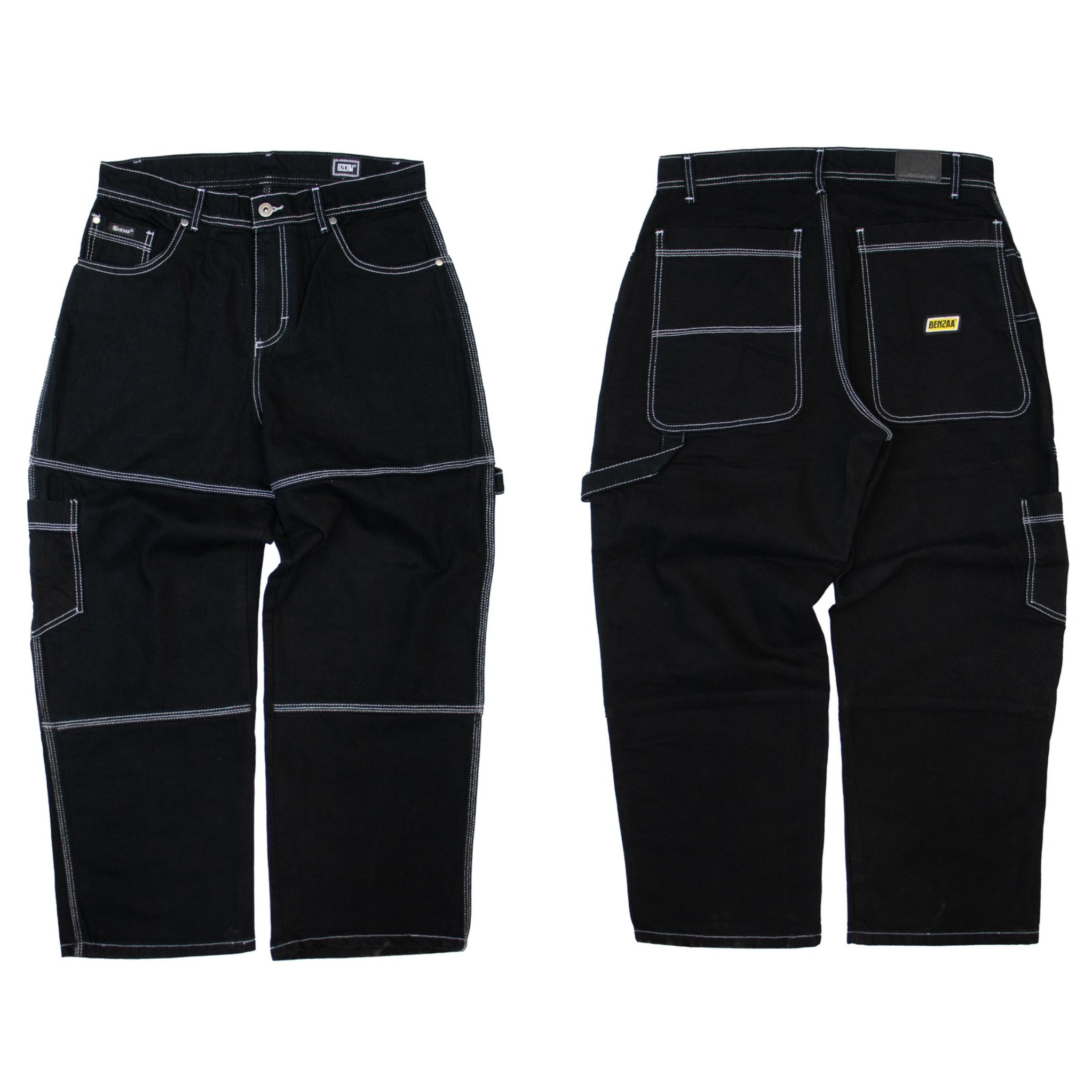 Pantalon Benzaa Negro Hilo Blanco Etiqueta Amarilla